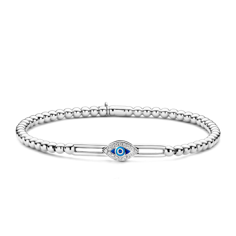 Hulchi Belluni 18k White Gold Evil Eye Stretch Beaded Bracelet