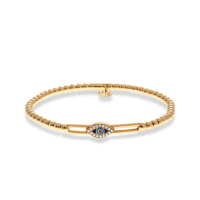 Hulchi Belluni 18K Yellow Gold Evil Eye Stretch Bead Bracelet