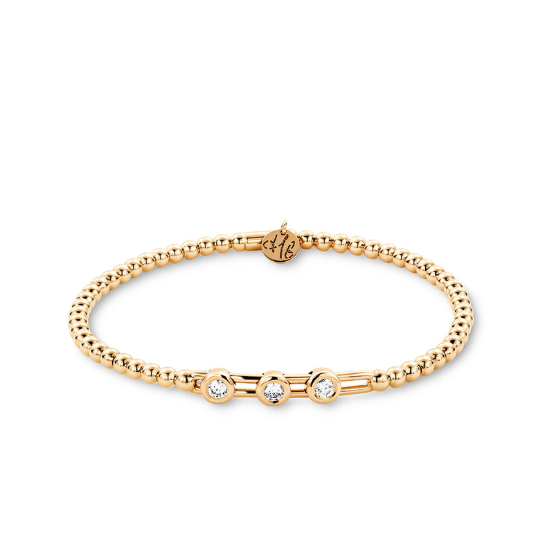 Hulchi Belluni 18K Yellow Gold Three Bezel Set Stretch Bead Bracelet