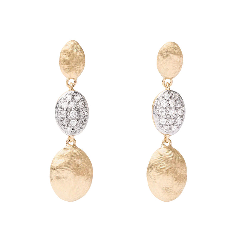 Marco Bicego 18K Yellow Gold Lunaria Three-Drop Earrings with Diamond Accents