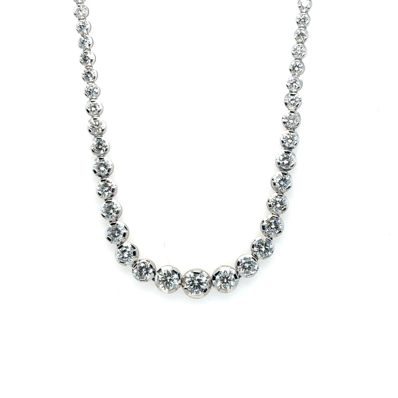 Pre-Owned 18K White Gold Graduated Diamond Tennis Necklace, 11 Carats