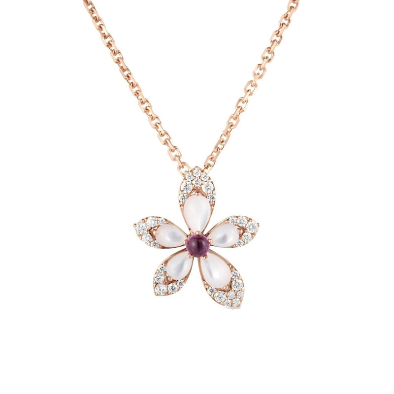 Roberto Coin 18K Rose Gold Tiare' Mother of Pearl Rubelite Flower Necklace