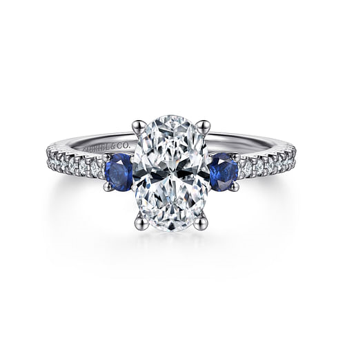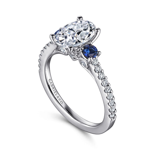Gabriel & Co. Chantal 14K White Gold Oval Three Stone Sapphire and Diamond Engagement Ring