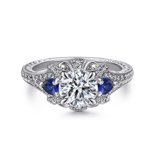 Gabriel & Co. Chrystie 14K White Gold Round Sapphire and Diamond Engagement Ring