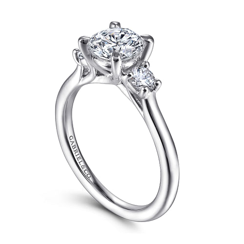 Gabriel & Co. Acacia 14K White Gold Round Three Stone Diamond Engagement Ring