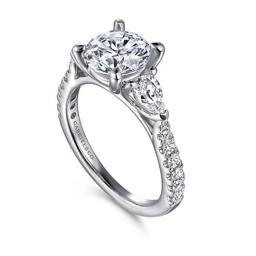 Gabriel & Co. Sanaa 14K White Gold Round 3 Stone Diamond Engagement Ring