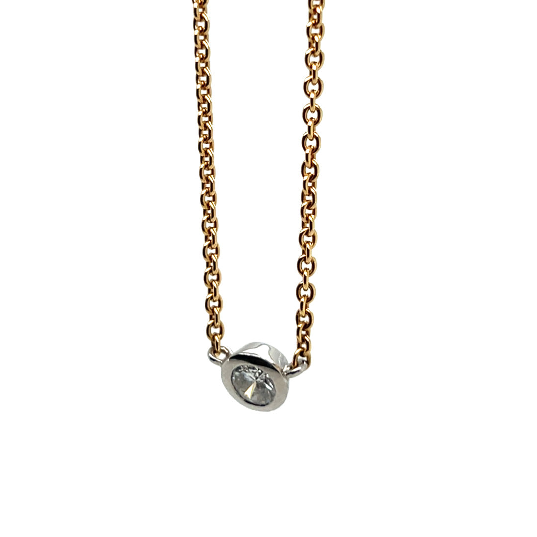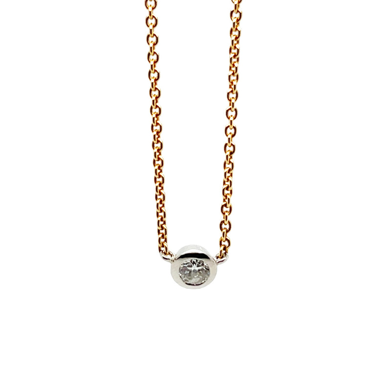 Pre-Owned 18K Yellow Gold and Platium Bezel Set Diamond Necklace