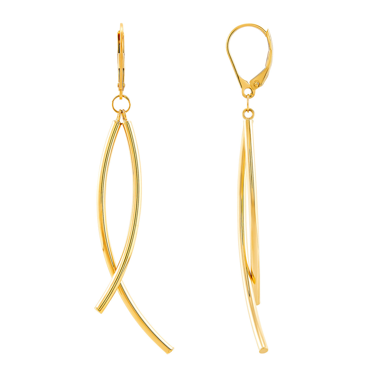 14K Yellow Gold Beads & Bar Dangle Earrings