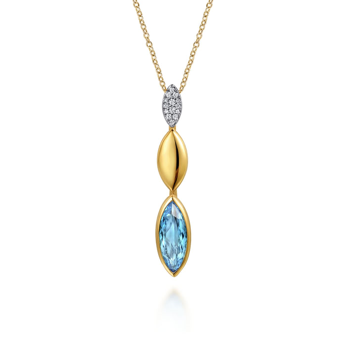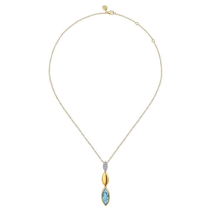 Gabriel & Co. 14K White Gold and Yellow Gold Diamond and Marquise Blue Topaz Drop Necklace