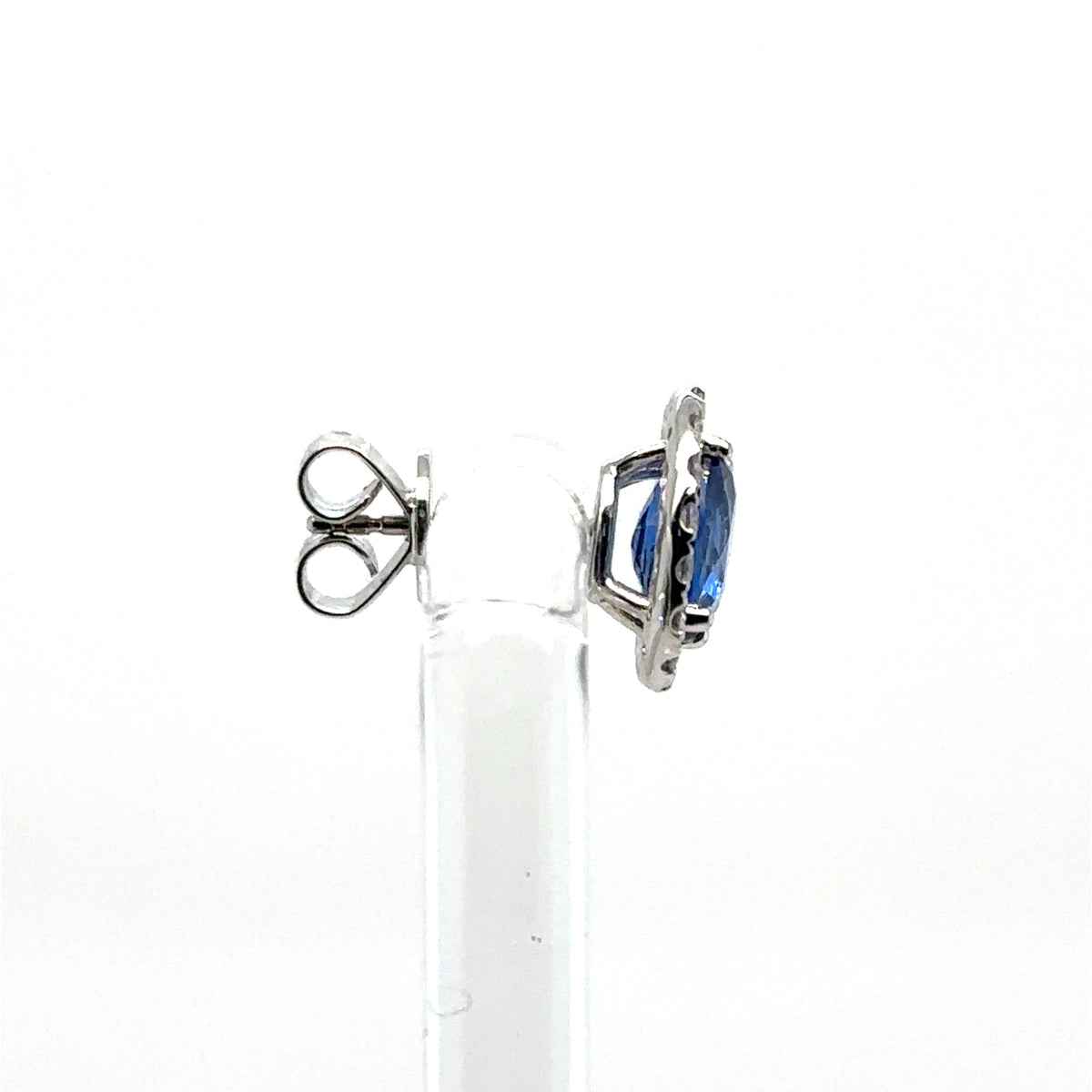 18K White Gold Oval Sapphire Diamond Stud Earrings