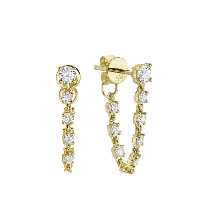 18K White Gold Sapphire and Diamond Huggie Earrings