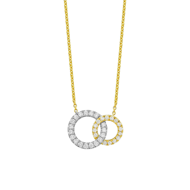 18K Yellow & White Gold Interlocking Circle Diamond Necklace