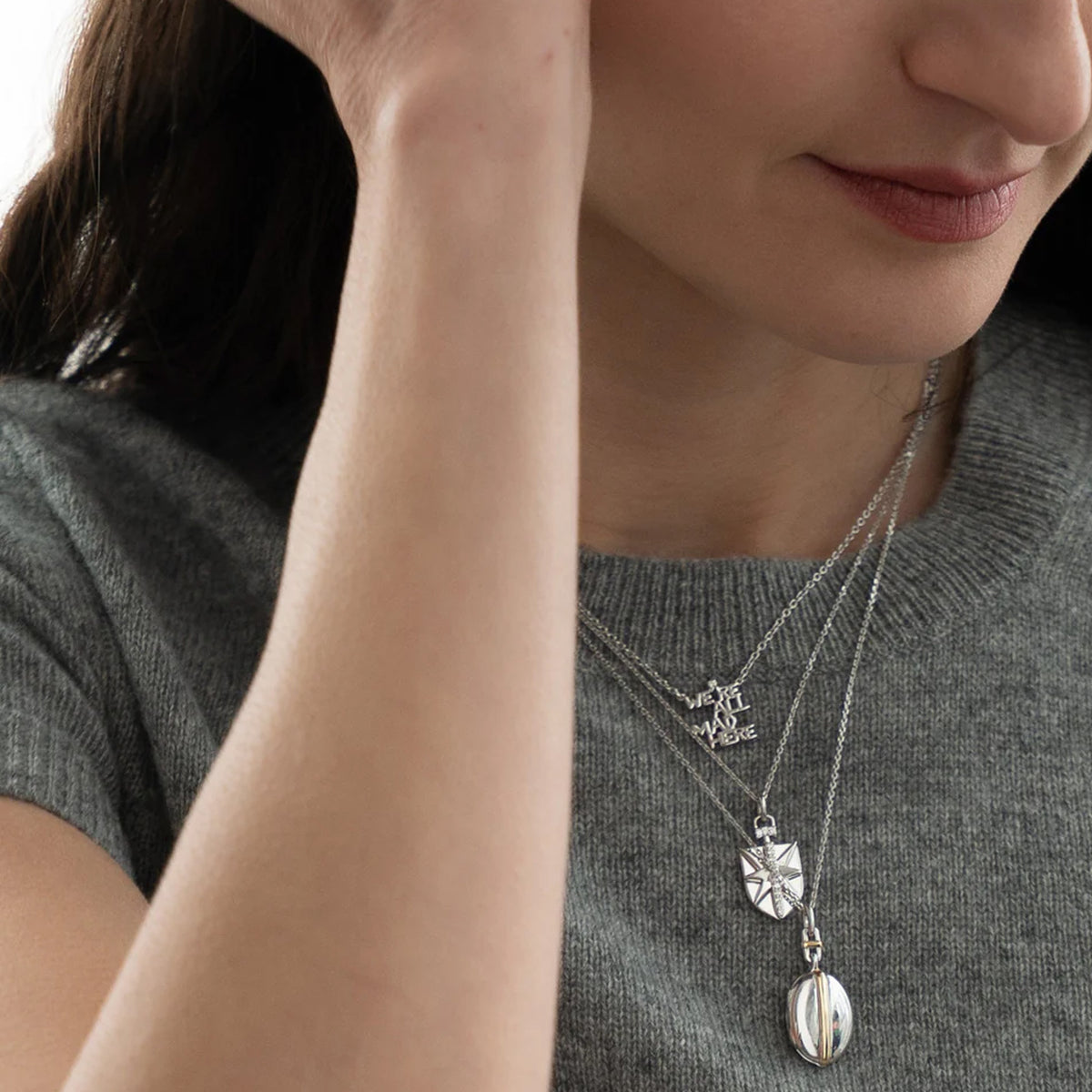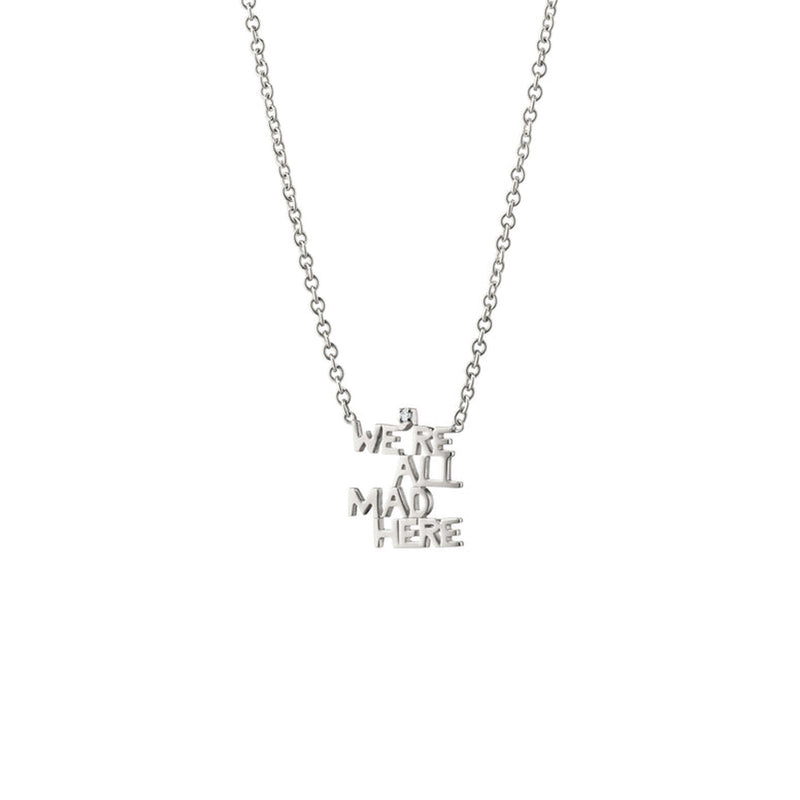 "We're All Mad Here" Sterling Silver Necklace with White Sapphire