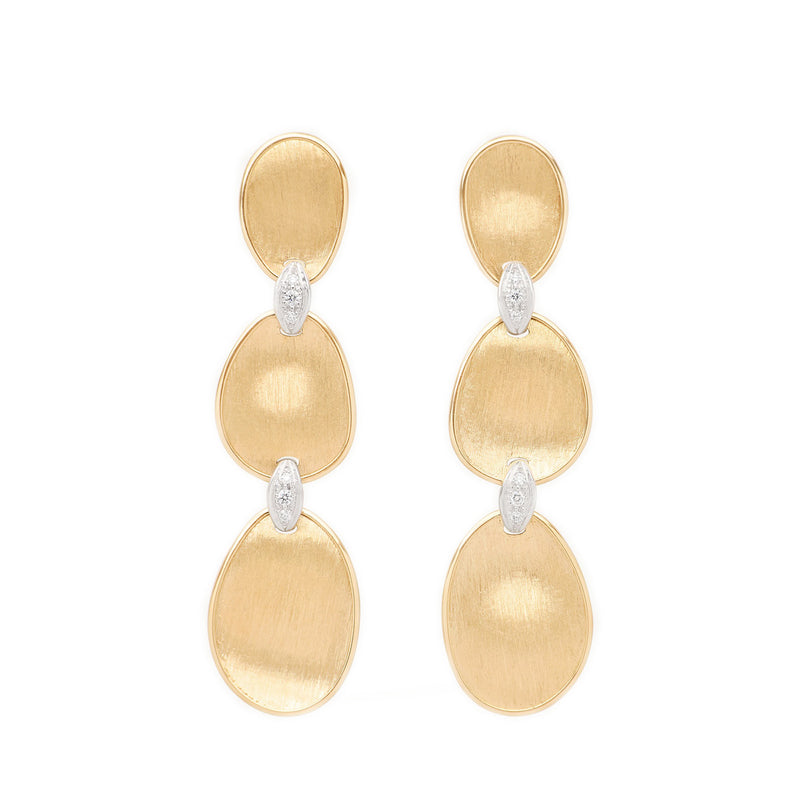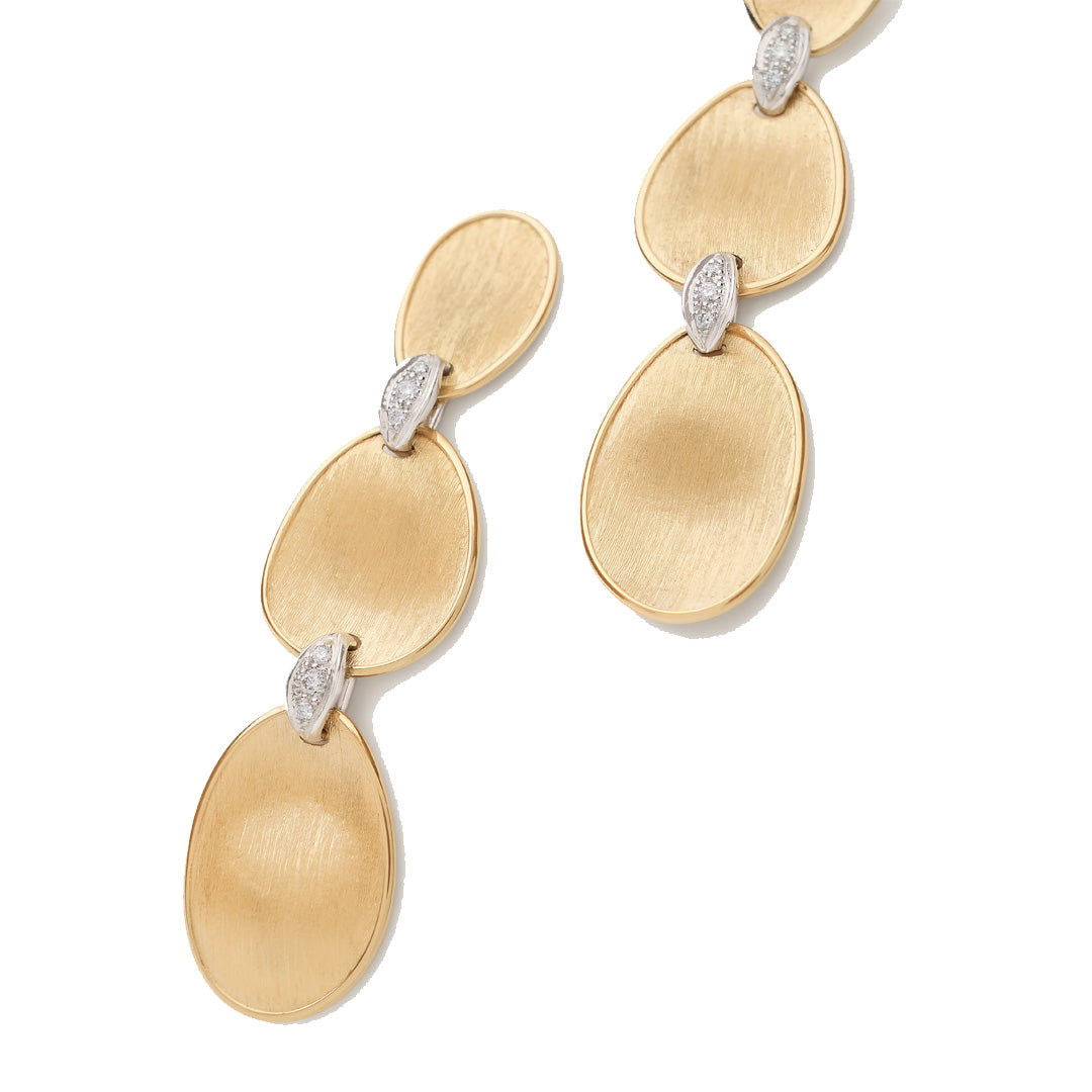 Marco Bicego 18K Yellow Gold Lunaria Three-Drop Earrings with Diamond Accents