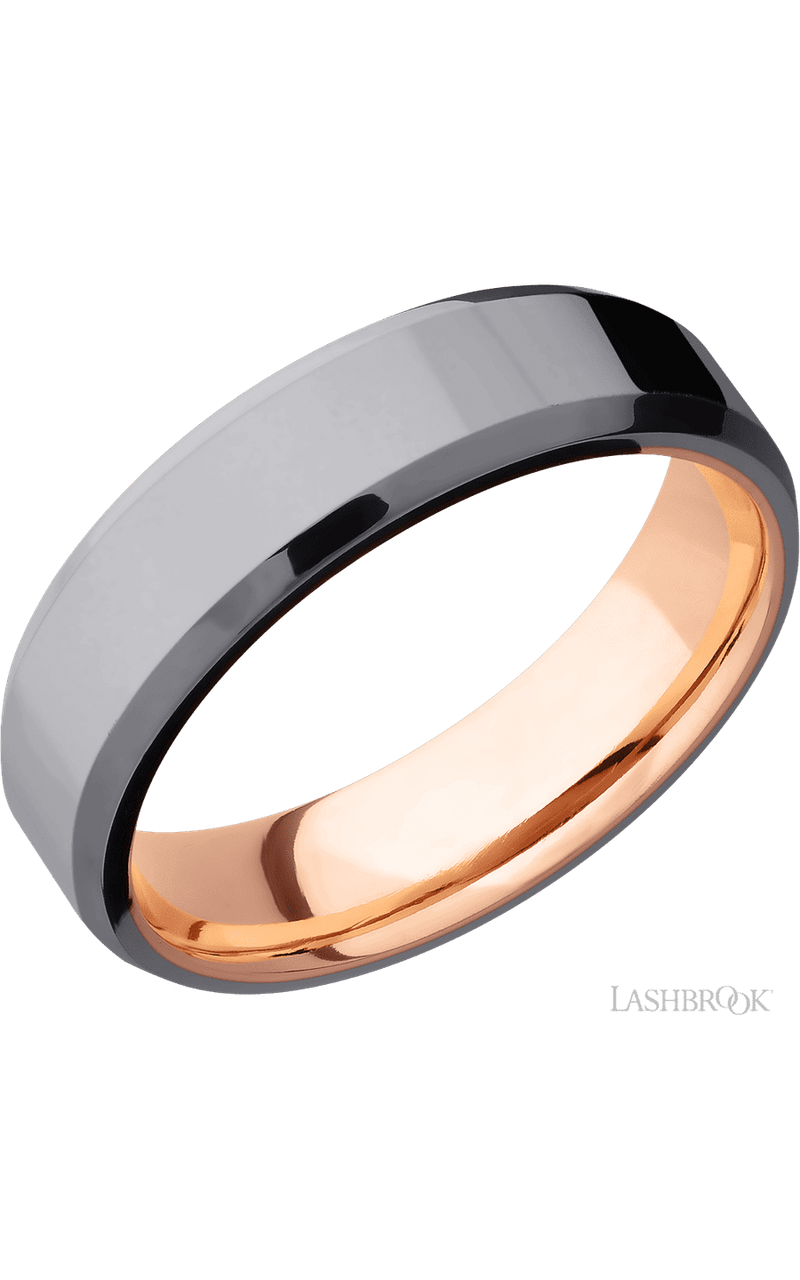 6 mm wide Beveled Tantalum band featuring a 14K Rose Gold sleeve.