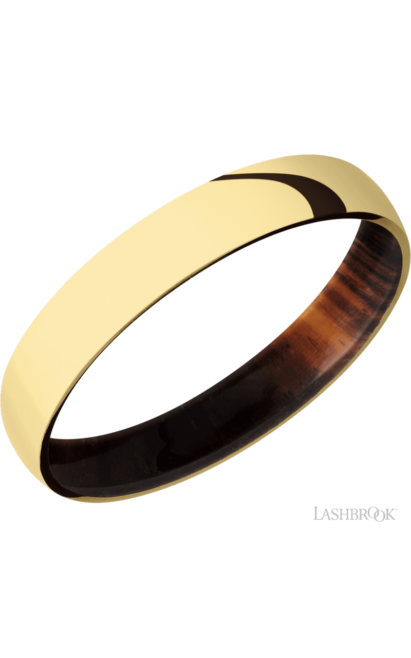 4 mm wide Domed 14K Yellow Gold band featuring a Cocobolo sleeve.