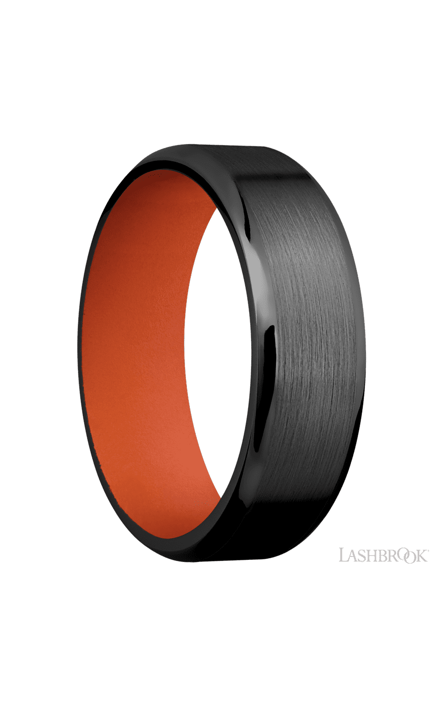 7 mm wide Beveled Zirconium band featuring a Hunter Orange sleeve.