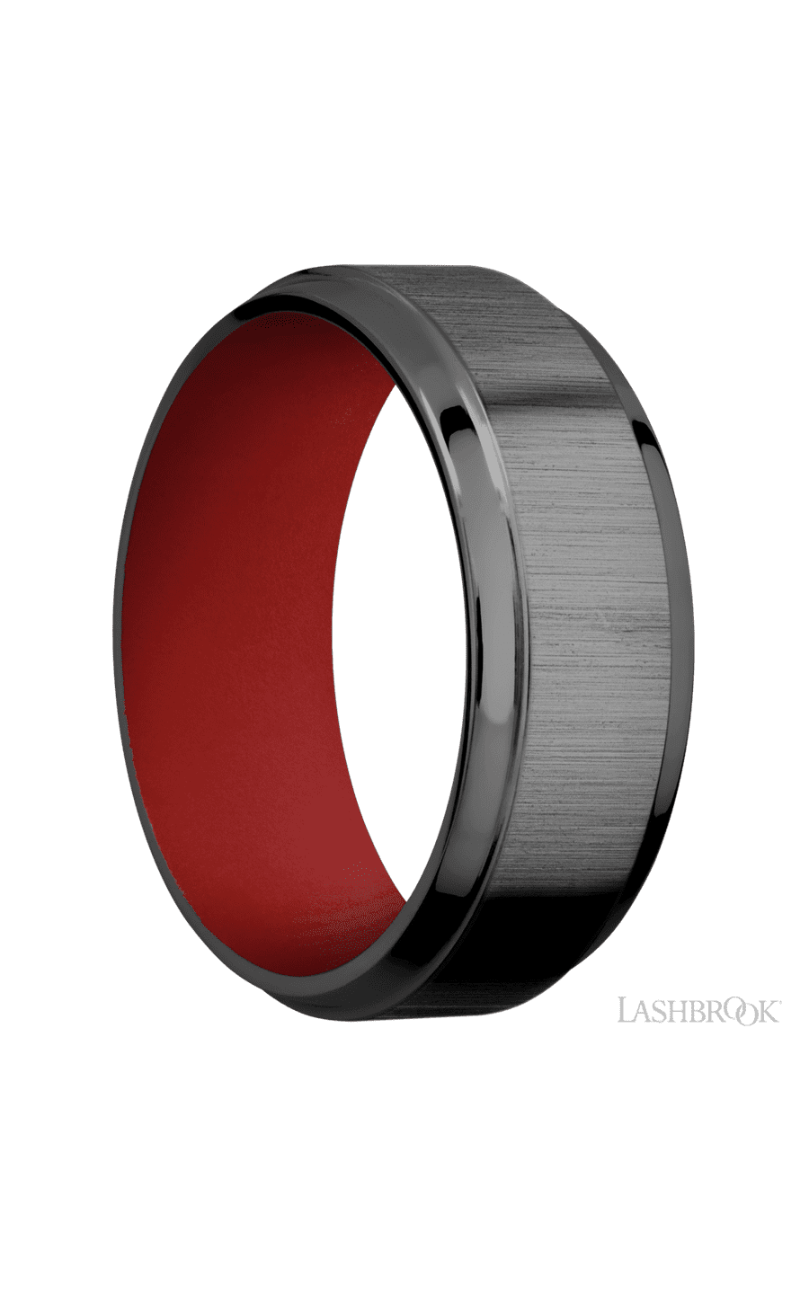 8 mm wide High Bevel Zirconium band featuring a Bright Nickel sleeve.