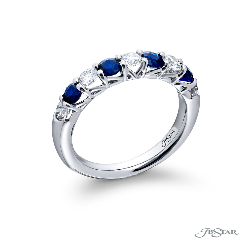 JB Star Platinum Shared Prong Round Sapphire & Round Diamond Band