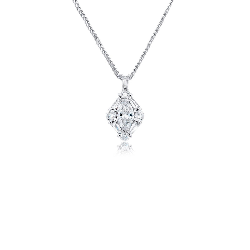JB Star Platinum Tapered Baguettes & Round & Marquise Cut Diamond Necklace