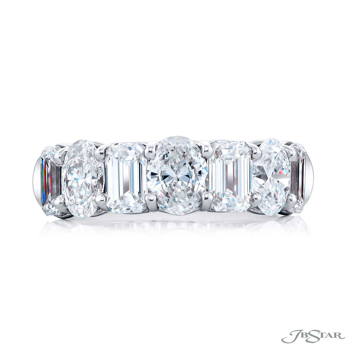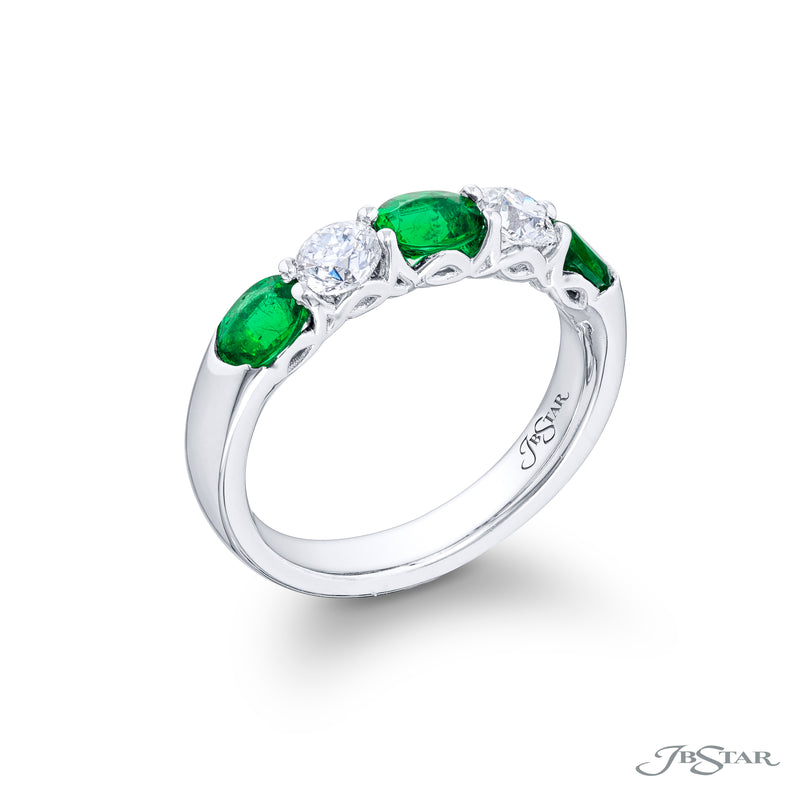 JB Star Platinum Shared Prong Emerald & Oval Cut Diamond Band