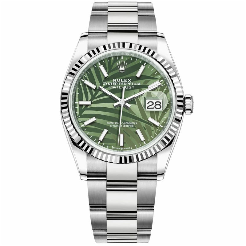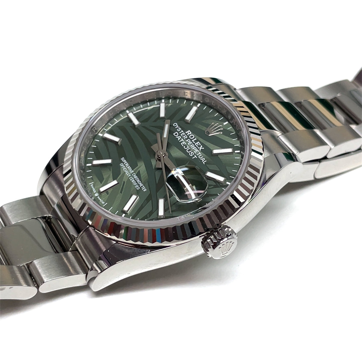 Pre-Owned Rolex 36mm Datejust Oyster Palm Green Jungle Dial Watch 126234 2021