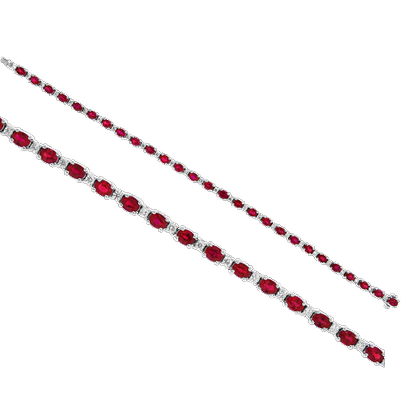 18K White Gold Tennis Bracelet with Alternating Round-Cut Rubies and Diamonds