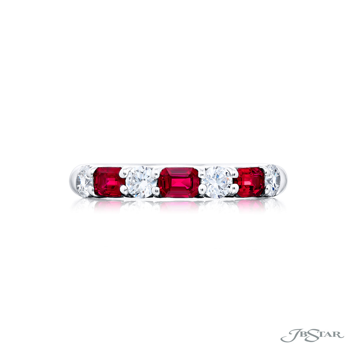 JB Star Platinum East West Emerald Cut Ruby & Round Diamond Band
