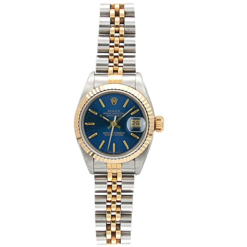 Pre-owned Rolex Datejust Blue Dial Two Tone Ladies 26mm Watch 69173 Year 1994