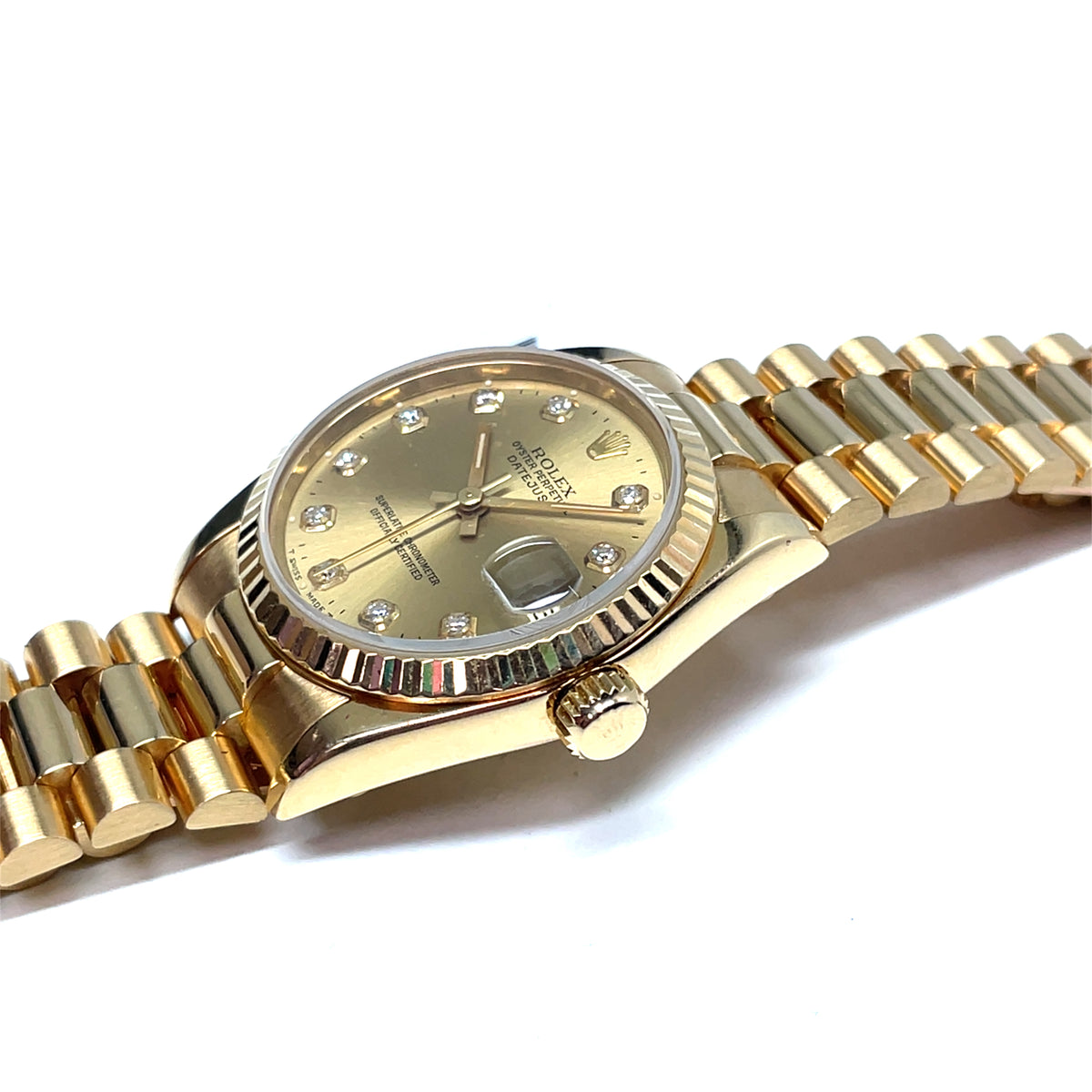 Pre-Owned Rolex Gold Ladies Datejust 69138 Diamond Dial & Bezel Year 1987 Watch Presidential