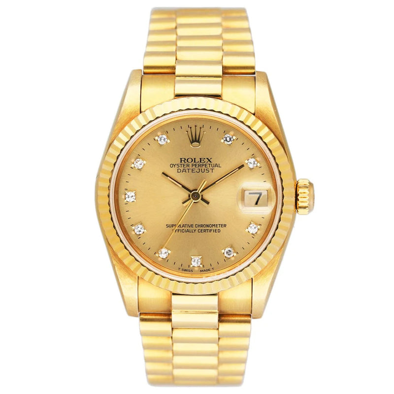 Pre-owned Rolex Gold DateJust 68278 Diamond Champagne Dial Ladies Watch 31mm 1993