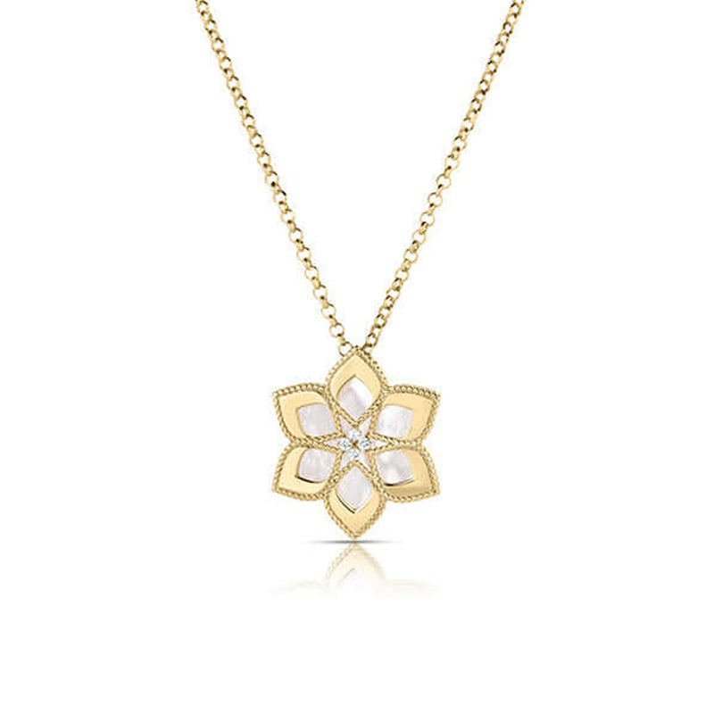 Roberto Coin 18K Yellow Gold Vernazza Diamond & Mother Of Pearl Flower Long Necklace