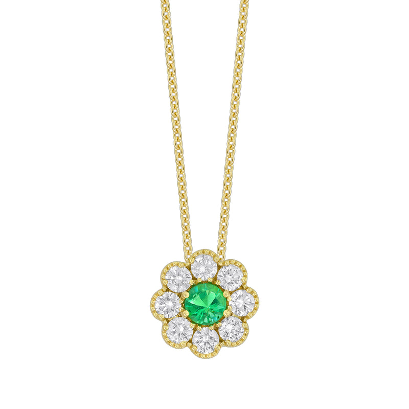 18K Yellow Gold Emerald Diamond Floral Necklace