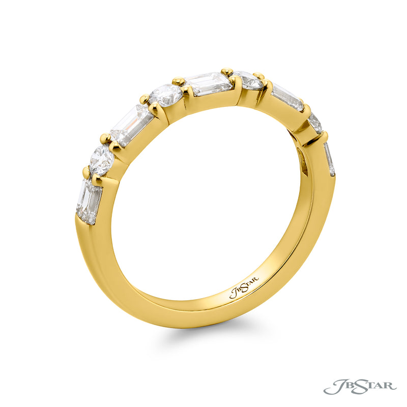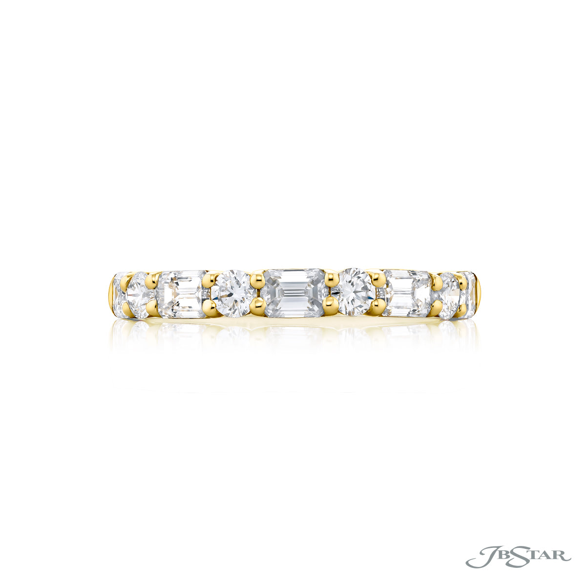 JB Star 18K Yellow Gold 9-Stone Emerald & Round Diamond Band