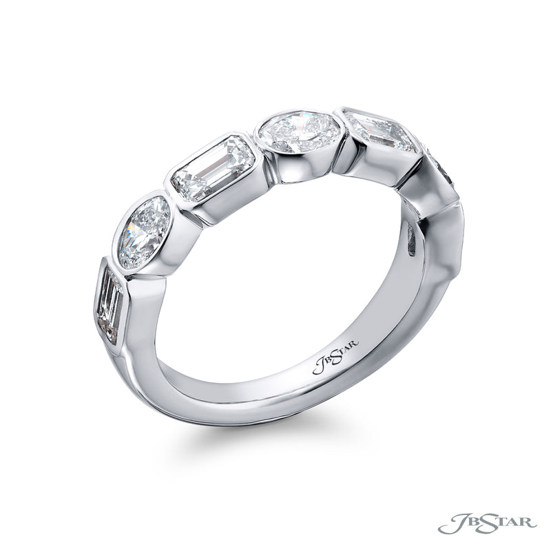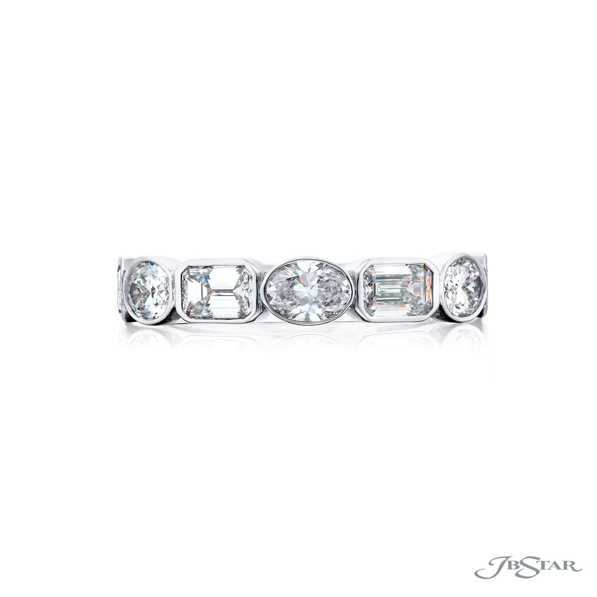 JB Star Platinum Bezel Set Oval & Emerald Cut Diamond Ring