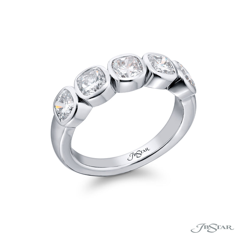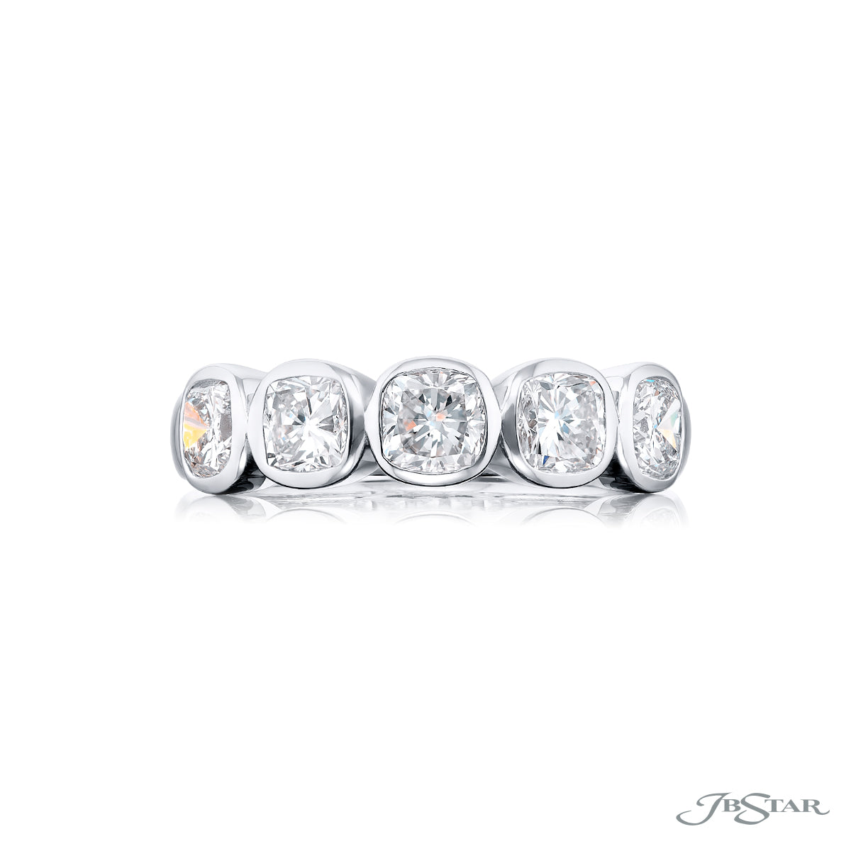 JB Star Platinum Bezel Set Cushion Diamond Ring