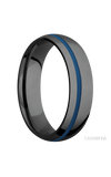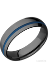 Z6D11OC/A 6 mm wide/Domed/Zirconium band with one 1 mm Off Center inlay of Ridgeway Blue.