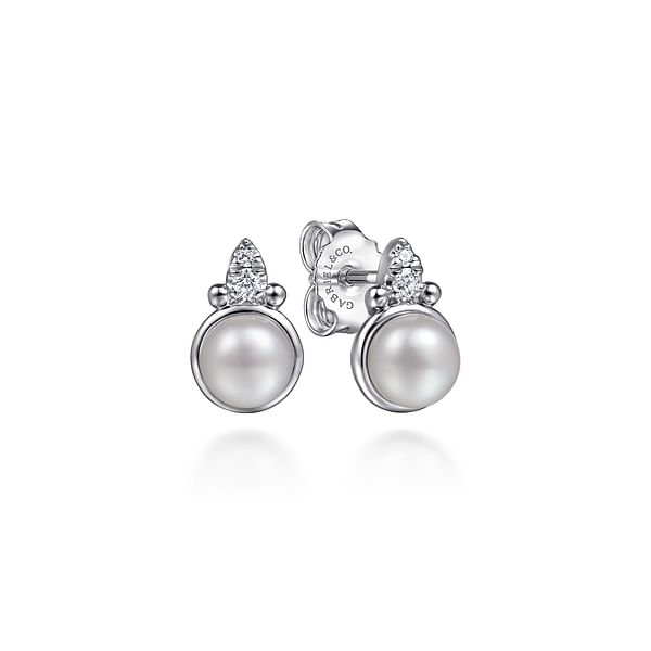 Gabriel & Co. 925 Sterling Silver Diamond Bujukan Pearl Stud Earrings